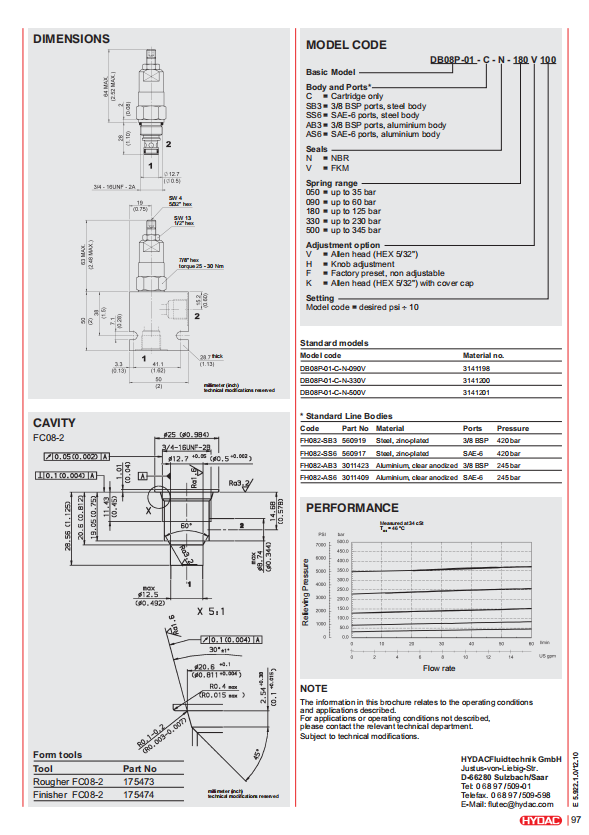 成都牧赫液压技术有限公司现货供应德国贺德克先导式溢流阀DB08P-01-C-N-090V