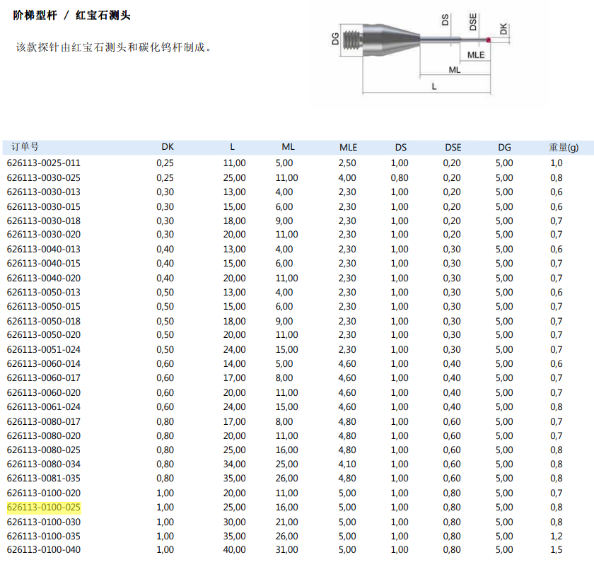 蔡司三坐标测针加长杆 626103-5020-000 测头现货直发