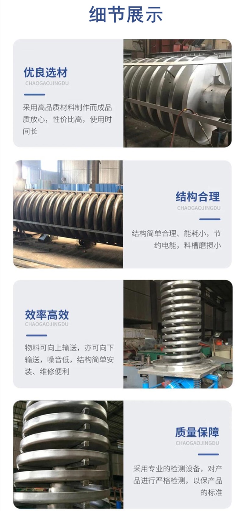 驱动装置:通常采用电动机作为动力源,通过减速机等传动部件将动力传递给螺旋轴,以实现螺旋叶片的旋转运动。驱动装置的功率大小根据提升机的输送能力和提升高度等因素进行选择。