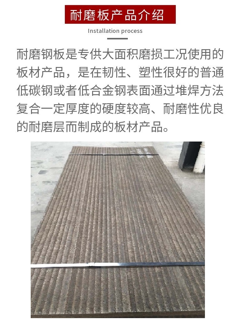 产品介绍→:耐磨堆焊复合板,是一种新型的高耐磨复合材料,它是采用自动金属电弧堆焊新工艺方法,在整幅钢板上堆焊高铬合金耐磨层达到耐磨效果。
