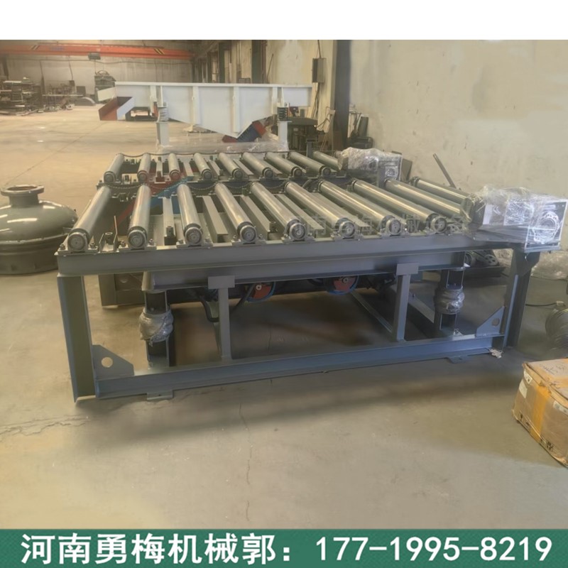 滚动输送一体振动平台托辊组件:是托辊式振动平台的关键部件,通常由多个托辊组成,每个托辊的两端各通过一个托辊支架与基座相连,托辊可在托辊支架上自由转动。这些托辊一般被均分成两组,分别设置在平台支撑结构的两边,其轴向中心线与激振力方向垂直,结构相对简单,操作方便,操作人员只需将物料放置在台面上,接通电源并调节相关参数即可开始工作。而且振动电机等部件的维护也比较简单,降低了设备的维护成本,可以产生相对较低频率但较大振幅的振动,能够有效地将物料中的空气排出,使物料更加紧实,适用于需要较大振动力的场合,如混凝土预制件的振捣、消失模铸造中的型砂紧实等。