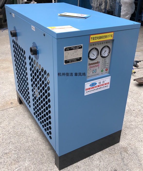 冷干机特点:1、制冷压缩机采用高温型全封闭制冷压缩机,运转稳定,噪声低,性能可靠,省电寿m长。 2、热交换器、冷凝器选用g效螺纹管,传热系数高,因而体积小,结构紧凑。筒体材料选用不锈钢或碳钢镀锌,可避免对夺压缩空气的二次污染。 3、制冷控制元件均采用制冷元件,性能优良,具有热力膨胀阀的节流降压功能,热气旁通阀的能量调节功能,油分离器的冷冻油的油分保护功能,冷媒高低压控制器的冷媒高低压保护等功能。 4、气液分离采用旋风分离与不锈钢丝网捕雾有机结合的气液分离器,具有气液分离效果彻底,避免水份的二次蒸发,冷干机的干燥效果的重要作用。它比旋风分离器分离效果好得多,同时又比过滤式气液分离器使用成b低,具有较市制性能价格比。 5、设备结构设计合理,便于维护保养,箱式外形,美观大方。 6、无基础安装。 7、实时显示运行参数。