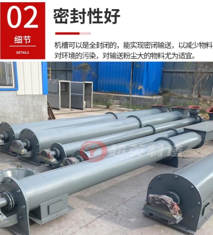 3 、各传动部位均采用浮动连接方式,吊轴承为万向节结构,使螺旋体,吊轴承和尾部总成形成一个整体旋浮体,在一定范围内可随输送阻力自由旋转避让,不卡料,不堵料。