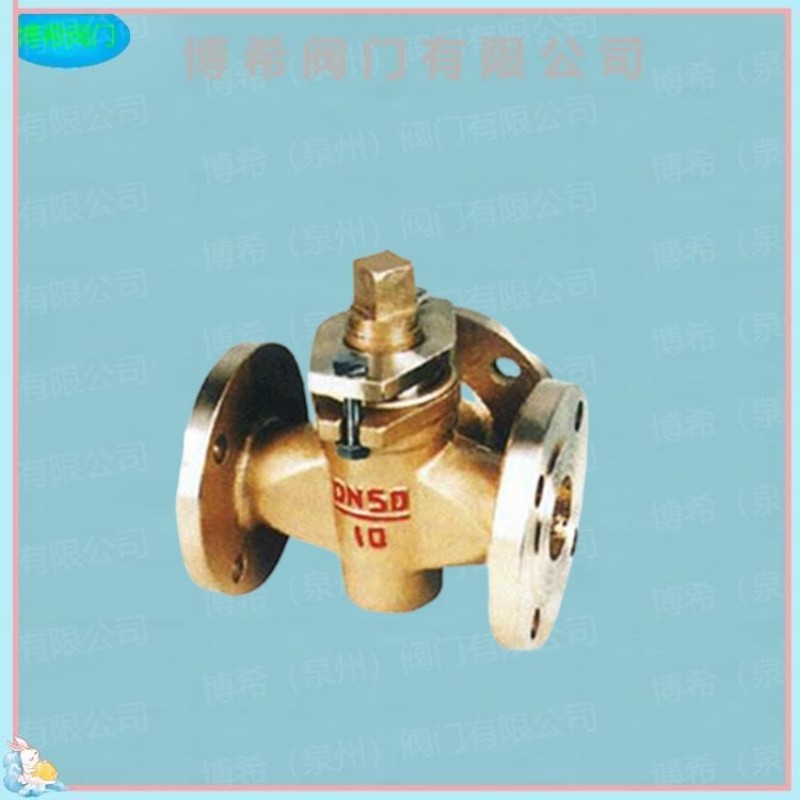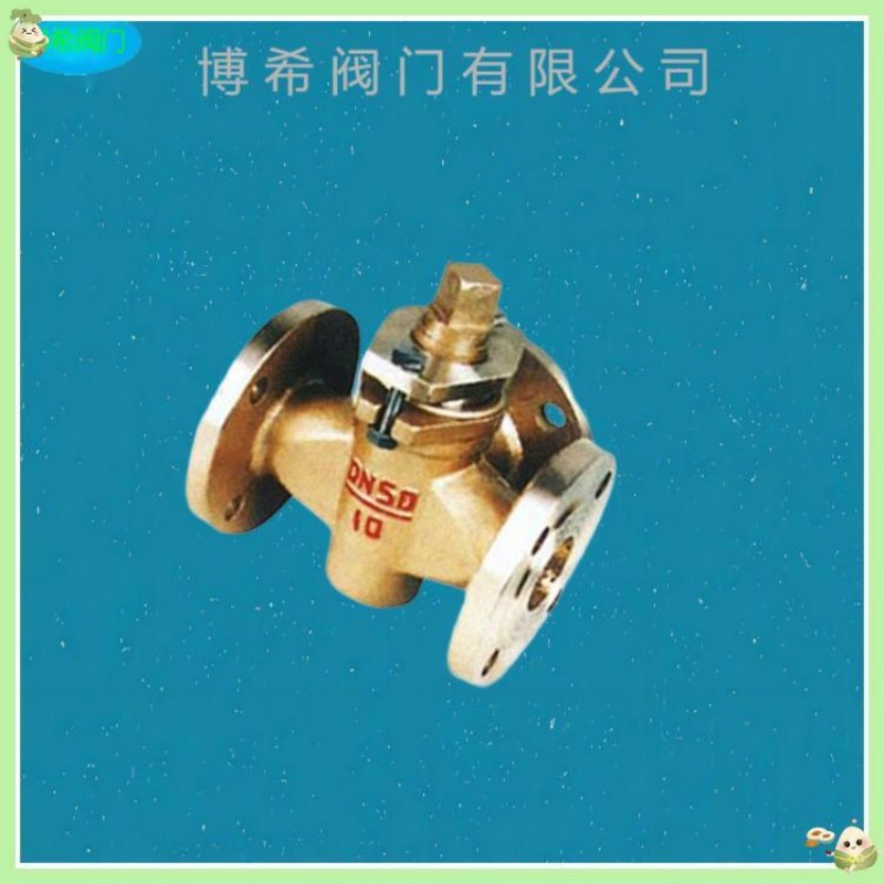 全铜阀体三通对夹式法兰连接手动调节旋塞閥