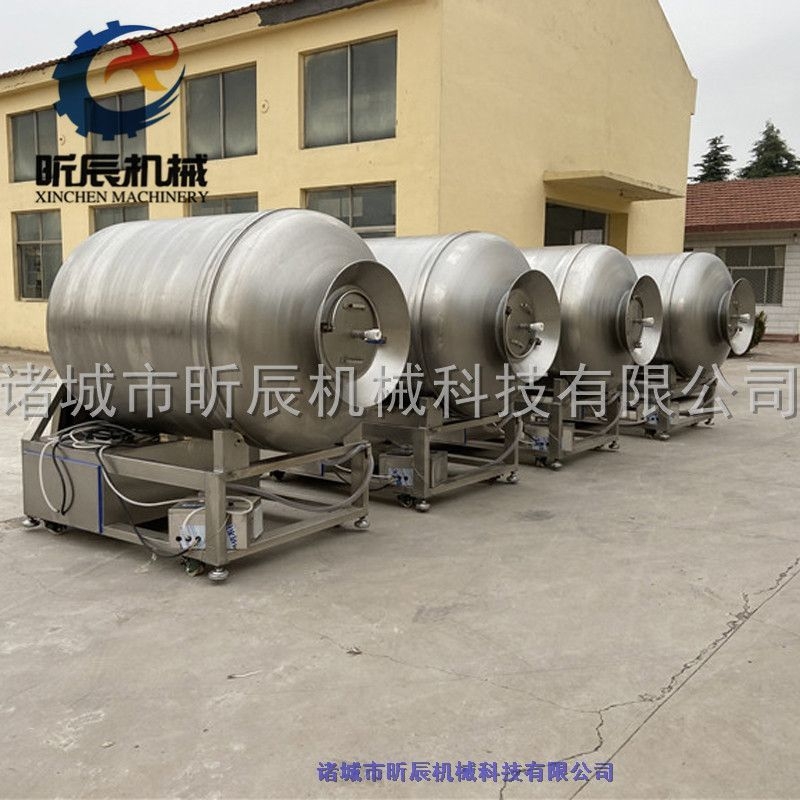诸城昕辰机械牛肉牛排鸡肉鸡柳鸡排鸭胸真空入味滚揉机腌肉机滚揉缸滚桶 腊肉滚揉机,真空滚揉机是在真空状态下,利用物理冲击的原理,让肉在滚筒内上下翻动,相互撞击、摔打,达到按摩、腌渍作用,使肉均匀的吸收腌渍,提高肉的结着力及产品的弹性,通过滚揉、按摩能使肉体蛋白质分解成水溶性蛋白,易被人体吸收,同时能使添加料(淀粉等)与肉体蛋白质互为融合以达到肉质变嫩,口感好,出口率高。本机具有肺呼吸功能,让产品在滚筒内膨胀、缩小了往复运动,改善了肉组织的结构,提高了切面效果。