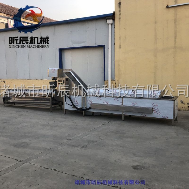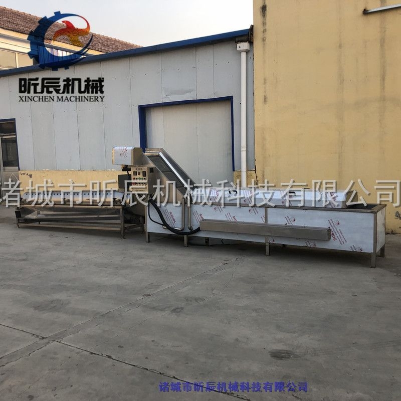 全自动鸡爪解冻线,鸡爪漂烫机(线)整机采用优质SUS304不锈钢,可采用电加热或 蒸汽加两种方式,温度、速度可根据工艺要求设定、自动控制温度及运行。该机运行平稳,不锈钢网带强度高、伸缩性小、不易变形、易保养等特点、操作维护方便等特点, 劳动强度低,人力少,自控化程度高,温度可在60-98℃内自动调控,上下层水温差较小,产品质量容易控制,漂烫鸡爪黄皮均匀,脱皮彻底(前面可以接输送上料机或是鸡爪解冻机)
