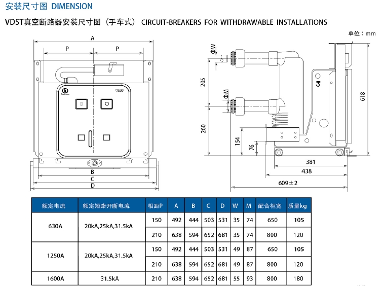 5、系列齐全。VDST真空断路器具有完整的规格系列和外形尺寸,电气参数高达5000A、40kA,适应各种市场的要求.