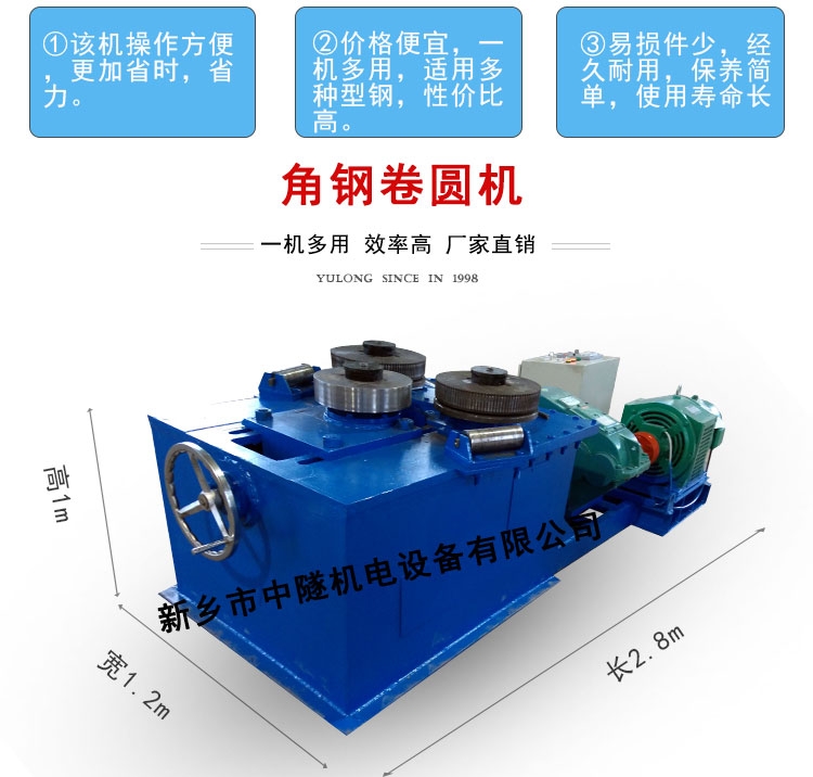 高铁吊篮角钢弯弧机 设备类型介绍 本发明的优点是:角钢卷圆机由原三辊卷板机进行改制而成,利用其延伸功能,将卷板机改制成角钢弯曲专机,具有投资小,快,不占用生产场地,性价比高的特点;其运行及操作与卷板机的操作是一样的,操作简单,无需再配置专机操作工,节约人力资源。同时随着生产效率的,生产成本大幅下降。