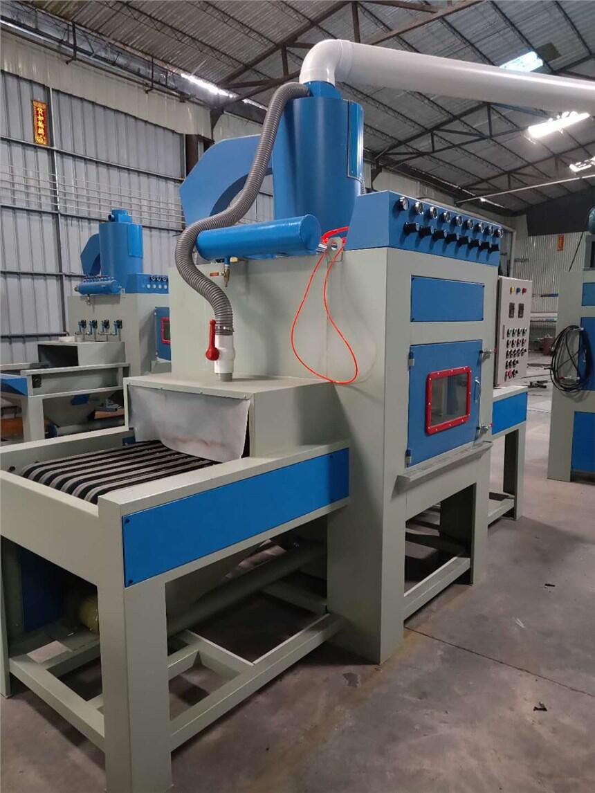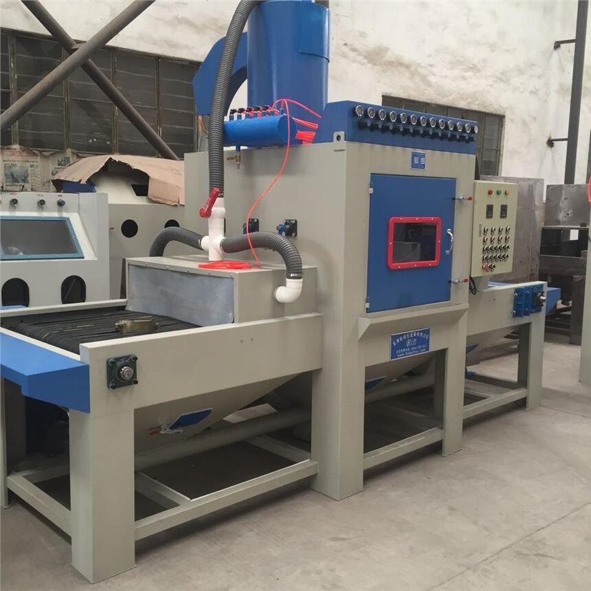 1.采用三角皮带输送工件,不会积砂,皮带速度配合喷砂工艺要求可实现变频调速;