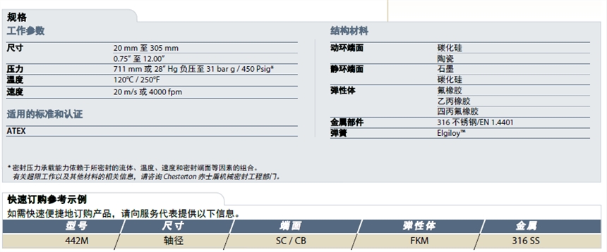Chesterton/赤士盾 442M 剖分式釜式 美国进口机械密封
