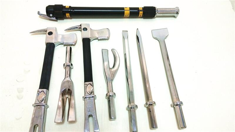 1.救y破c工具套装是一套一杆多用型救y工具、适合在不同环境及情况下发挥功能。适合救y车、消防队、特j队(破m)、特发事故拯救等;救y工作必备。滑动杆可以配合五款不同强化锻钢工具使用,以适应不同需求;例如:撕开金属片(如汽车、飞机外壳)、破开砖墙、门较、锁、大门等等,也可除去障碍硬物。当不加设特别工具时,滑动杆尾部也可作强力拷打工具之用。