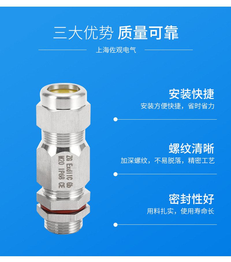 双密封防爆电缆压盖 304不锈钢隔爆型Exd CABLE GLAND 美制牙NPT1/2 防爆等级 | ExdIIC Gb/Ex tD A21 | ||