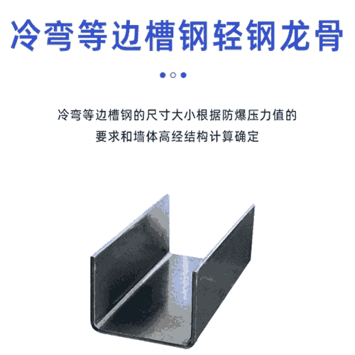 防爆墙做法二:横向龙骨槽钢和竖向龙骨槽钢的间距407x407,龙骨直接按揭即可,保温型需要填充岩棉保温板,厚度按照龙骨标准做。