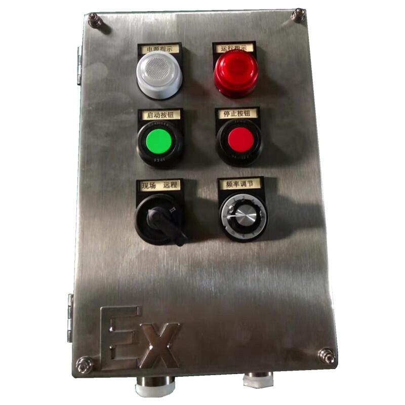 乐清益安防爆电器科技有限公司向您介绍我们的防爆机旁操作控制箱。我们将从多个角度来详细描述这个产品,帮助您了解它的特点和优势。下图这款防爆控制箱外壳尺寸为200X135X100,表面加装两个防爆按钮,两个防爆指示灯,一个防爆电位器,壁挂式安装,进出线口为G3/4,不锈钢紧固件。