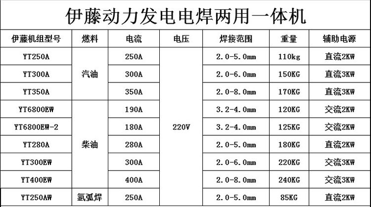 产品特性 | 发电电焊机 | ||