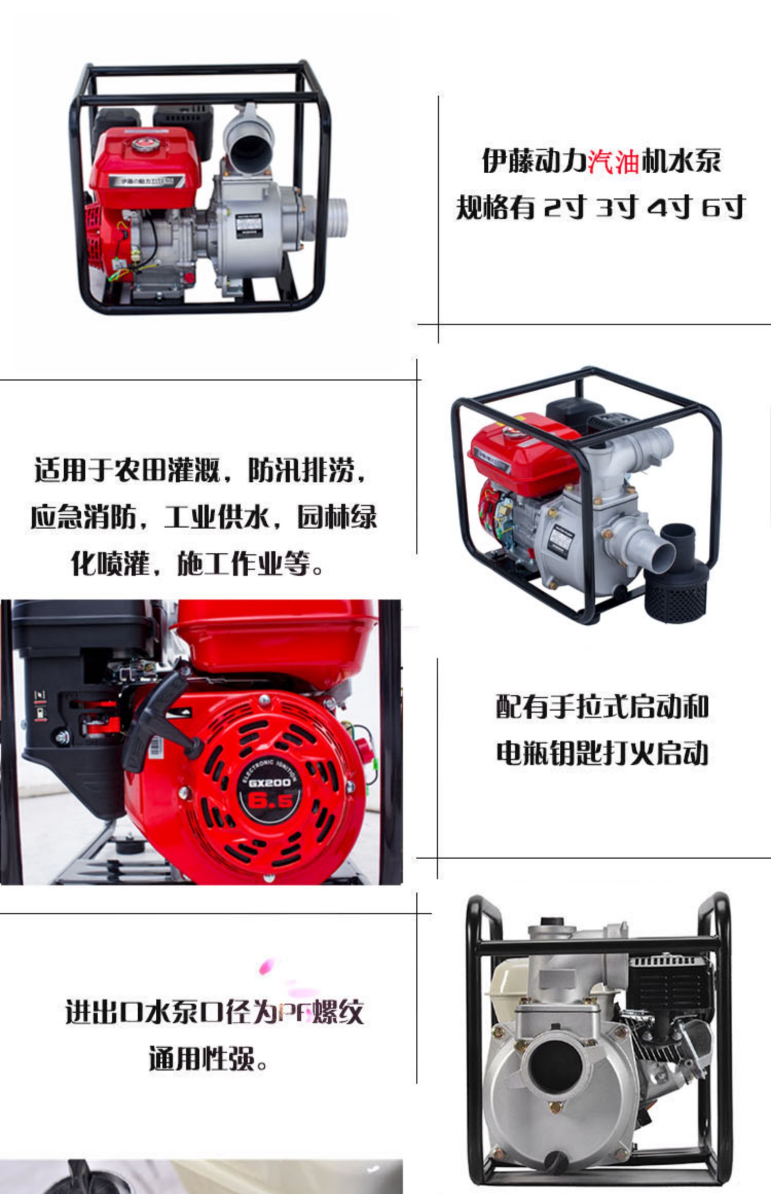 伊藤动力户外进口技术2寸汽油机清水泵YT20WP大流量便捷市政防汛
