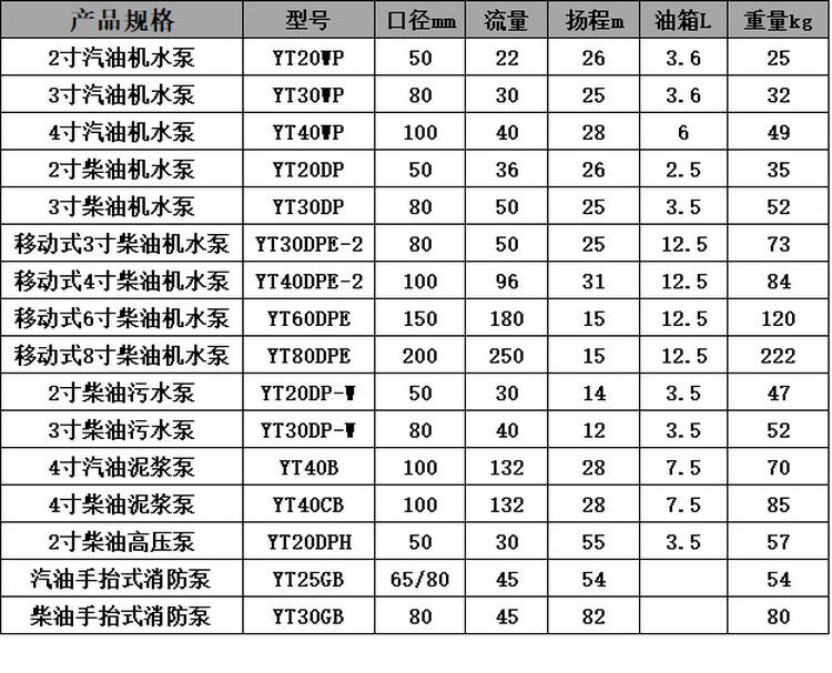 规格 | 3寸柴油机水泵 | ||