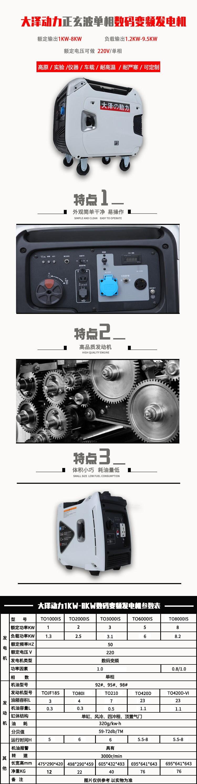 汽油发电机特点省油:优良的燃烧效率产生极高的经济效益。宁静:无论何时无论何处都能使用的低噪音发电机组。可靠:稳定的自动电压调节系统和机油警告系统,令人放心使用。