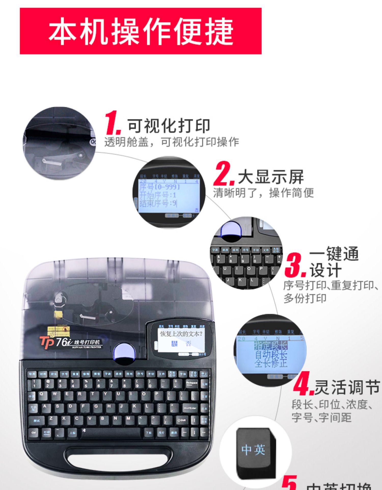 SUPVAN硕方TP76i线号机号码管打印机蓝牙电脑打号机线标印字机