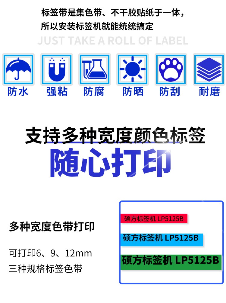 硕方标签机LP5125B 手持标签打印机 线缆标签打印机 通信线缆家用标签机 便携式户外防水布线 不干胶标签机