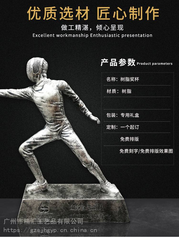 上海奖杯定制定做创意树脂工艺品击剑运动纪念品树脂金属奖杯制作