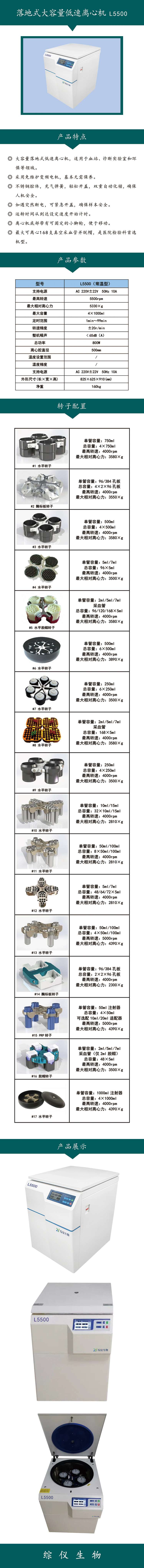 综仪生物5500转水平低速离心机L5500实验室用离心机