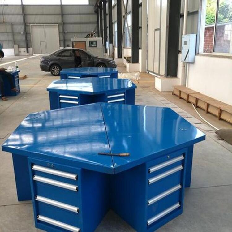 1.工作台使用于学校、车间流水线、钳工操作台、电子厂生产,等多种地方时使用.2.可以配带抽屉,柜子,灯架、挂板架、钳工台等设备配合生产。3.桌面有复合面、防静电面、榉木面、不锈钢面、钢包面等多种可供选择,根据需要的不同搭配不同的桌面。4.在抽屉上可以加配可以移动的分隔板,根据存放工具的大小来调整空间。5.工作台配带的工具柜可以选择是抽屉的、带柜子的,或是两者都有的。6.桌面承重1000Kg,可以根据不同的需求来调整材料,从而保证了承重.