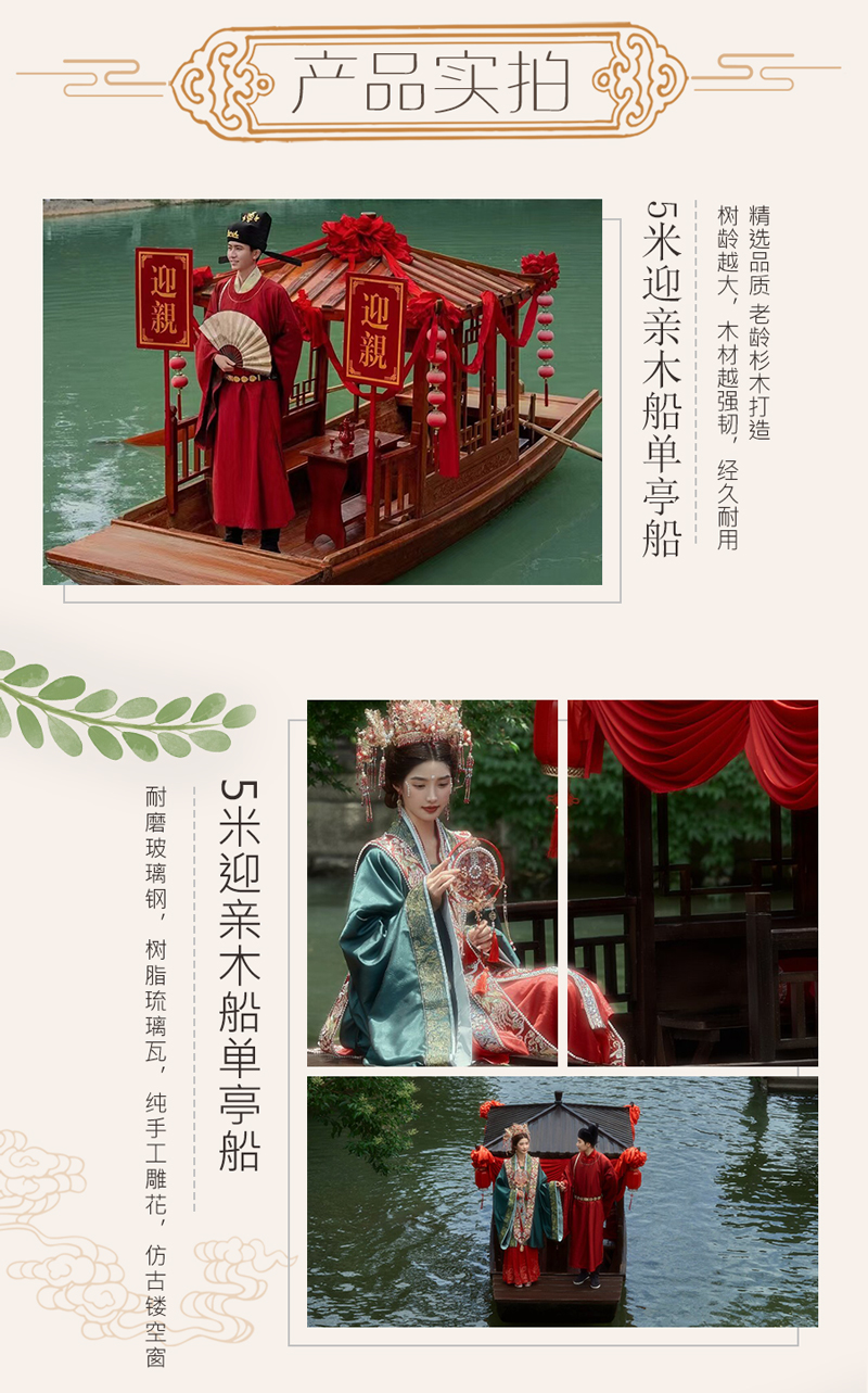 厂家定制电动摇橹仿古单亭迎亲船观光旅游餐饮婚纱摄影