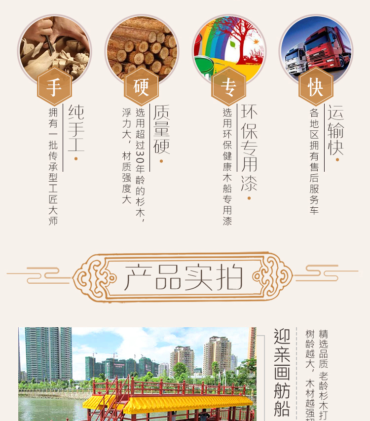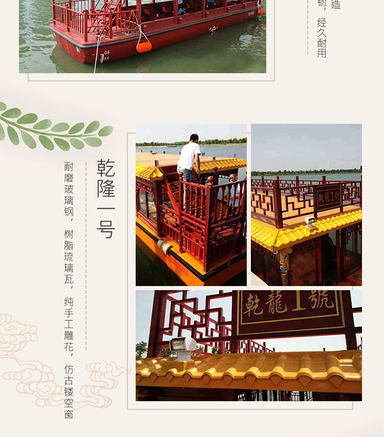周氏仿古电动游船双层画舫船木质旅游观光船大型木船厂家可定制