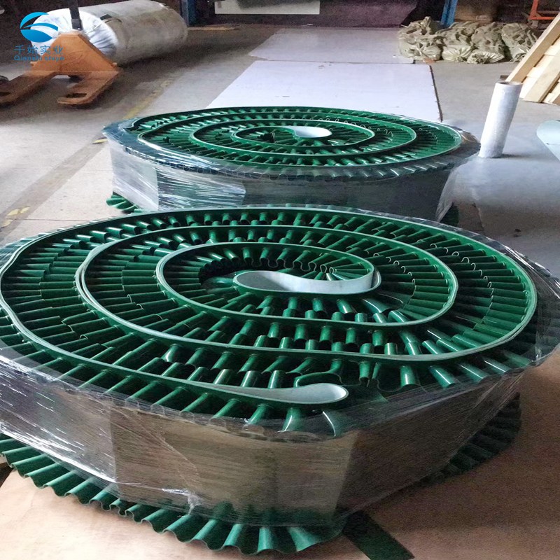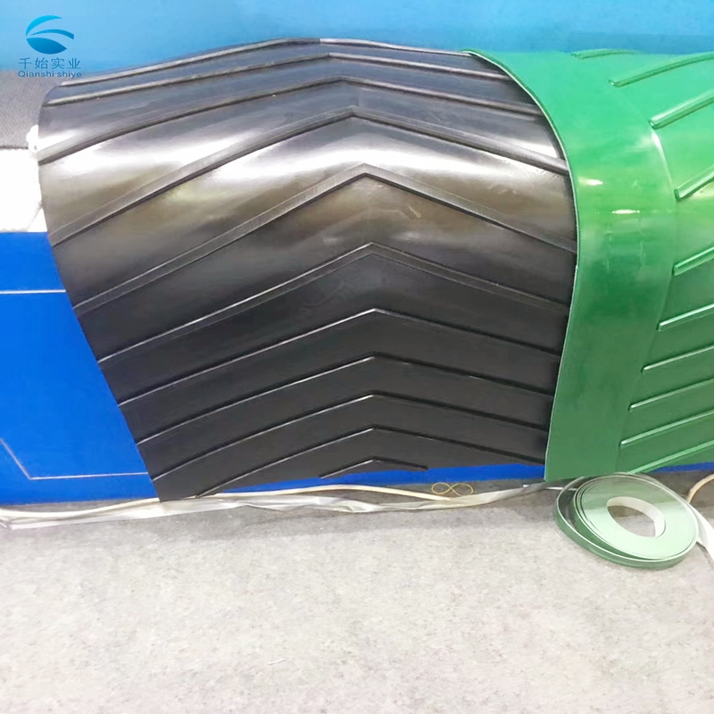 绿色裙边挡板pvc输送带主要采用在PVC、pu、pe、丁晴橡胶,硅胶输送带上加挡板,加裙边,加导条,我公司裙边挡板导条都有多种规格,在很多情况下,我们需要加装不同高度的不同型号的挡板、裙边,防跑偏导条到皮带上,输送光滑、散装的物料到高处,令物料即使在高角度倾斜也不至于散落。
