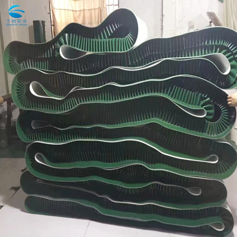 绿色/白色裙边挡板pvc输送带 爬坡挡边环形传送带 爬坡带简介:绿色裙边挡板pvc输送带为PVC材质,轻巧防滑,表面白色色,底面白色,二布二胶结构,没毒卫生,拉力好,耐磨,防滑,是输送食品产品的皮带。我公司在保证质量的前提下,货期快,基本上当天定货,当天发货。欢迎来电咨询,订购白色挡板pvc输送带!绿色裙边挡板pvc输送带主要应用在包装行业,物流行业,电子行业,食品行业,水产品,烟草行业,蔬菜,水果,茶叶,颗粒产品,粉状产品物料的输送,具有良好的效果,既能保证在高坡度的环境中,不至于下滑,散落。我们主要采用机械接头,机械热硫化接驳,直接让群边,挡板,导条与输送带融为一体,的利用皮带的特性,对输送带无伤害,使输送带的使用寿命更长。同时经过特殊加工还可做成导向带、提升带、裙边带等。