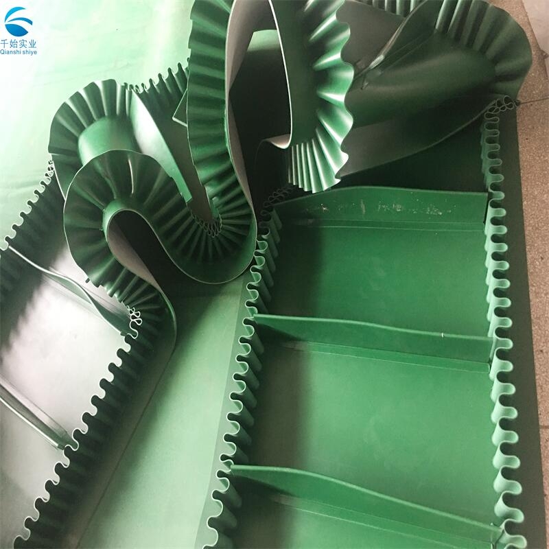 绿色PVC裙边挡板输送带 提升输送带 挡边环形传送带定制批发