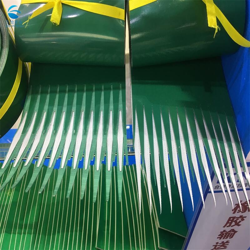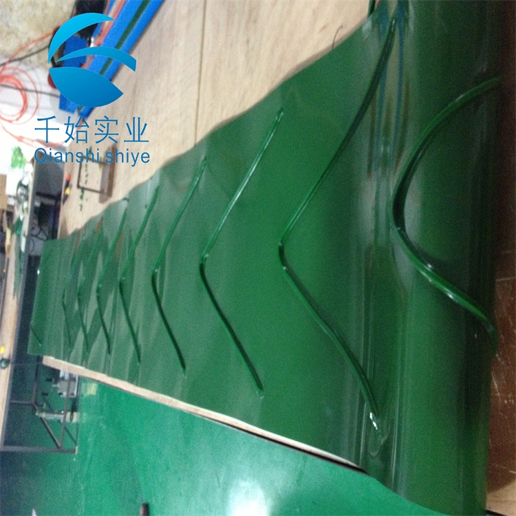 上海千始裙边挡板输送带厂家生产pvc输送带可加挡板,裙边牢固,寿命长,美观。有提升爬坡带、波状挡边带、PVC裙边挡板输送带等等。上海千始实业可提供特殊波状带免费设计,让您的提升爬坡带寿命更长,详情可联系客服! 产品特点: 1、挡板输送带适宜输送易撒落的粉状、粒状、小块状、糊状及液态状物料; 2、挡板输送带输送量大、提升高度更高; 3、挡板输送带从水平到倾斜(或垂直)能平稳过渡; 4、挡板输送带能耗低、结构简单、胶带强度高、使用寿命长。 5、挡板输送带增大了输送角度(30~90度); 6、挡板输送带占地面积小,投资少。