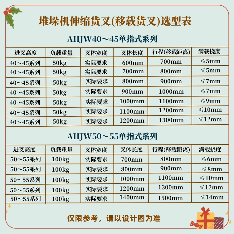 【上图】AHJW集维品牌:堆垛机伸缩货叉(选型表)2
