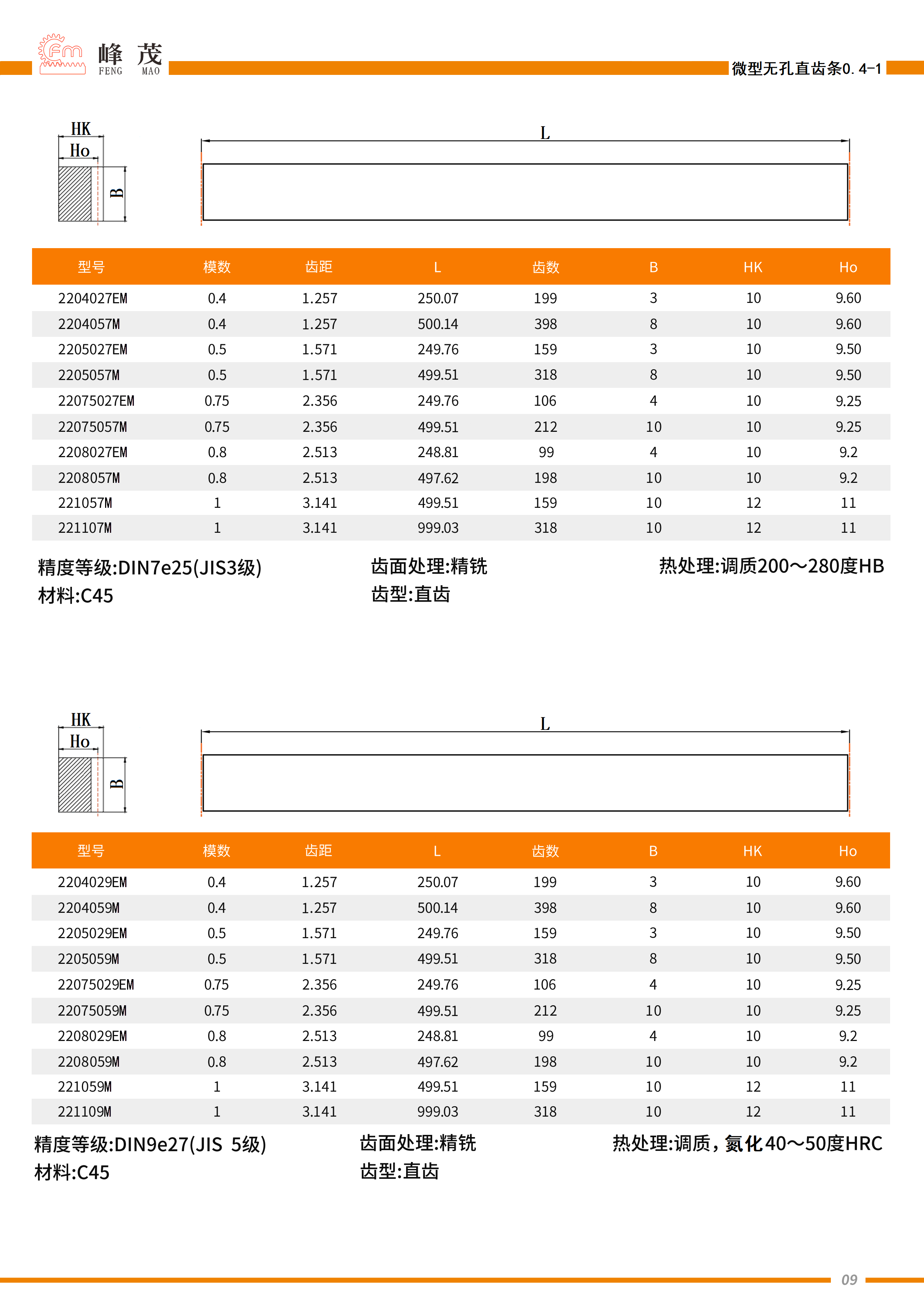 DIN7/9级M0.4/0.5/0.75/0.8/1M模直齿无孔调质氮化大小微模数齿条 是否进口 | 是 | ||