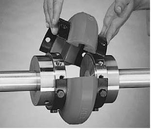 将半个莱克斯诺弹性体联轴器Omega?安装在轴套上并拧紧自锁螺栓。通过Omega?弹性体确定另外个轴套的间距,再固定那个轴套。