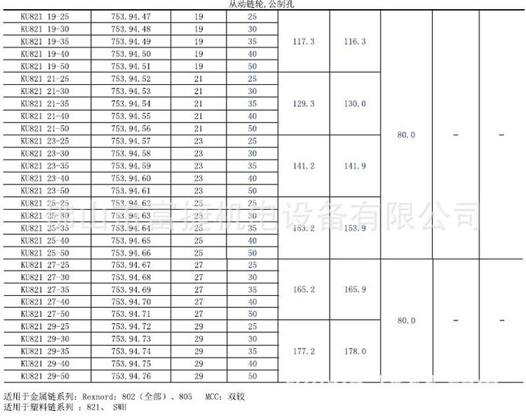 莱克斯诺Rexnord 平顶链板适用链轮 KU 821