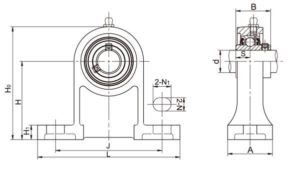 说明:该系列标准的轴承座材质是灰口铸铁,空心底