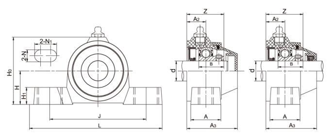 * 该系列的轴承座可在两侧车盖槽用以安装铁盖来防止灰尘的进入并确保操作安全。
