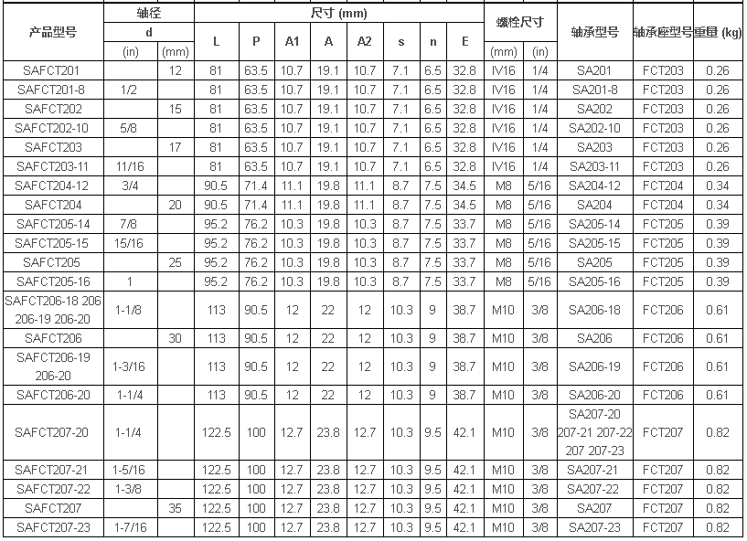 轴承: 轴承钢,顶丝锁紧、偏心套锁紧