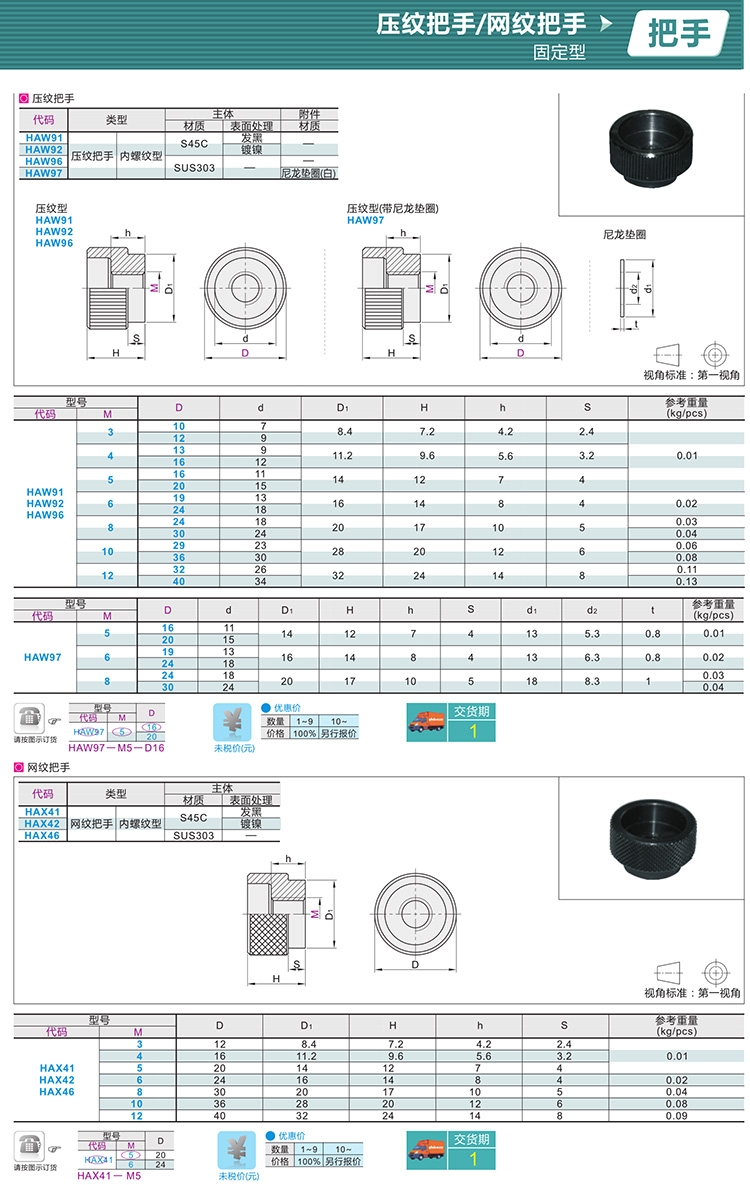 HAW91-M6-D19、HAW91-M6-D24、HAW91-M8-D24、HAW91-M8-D30、HAW91-M10-D29、HAW91-M10-D36、