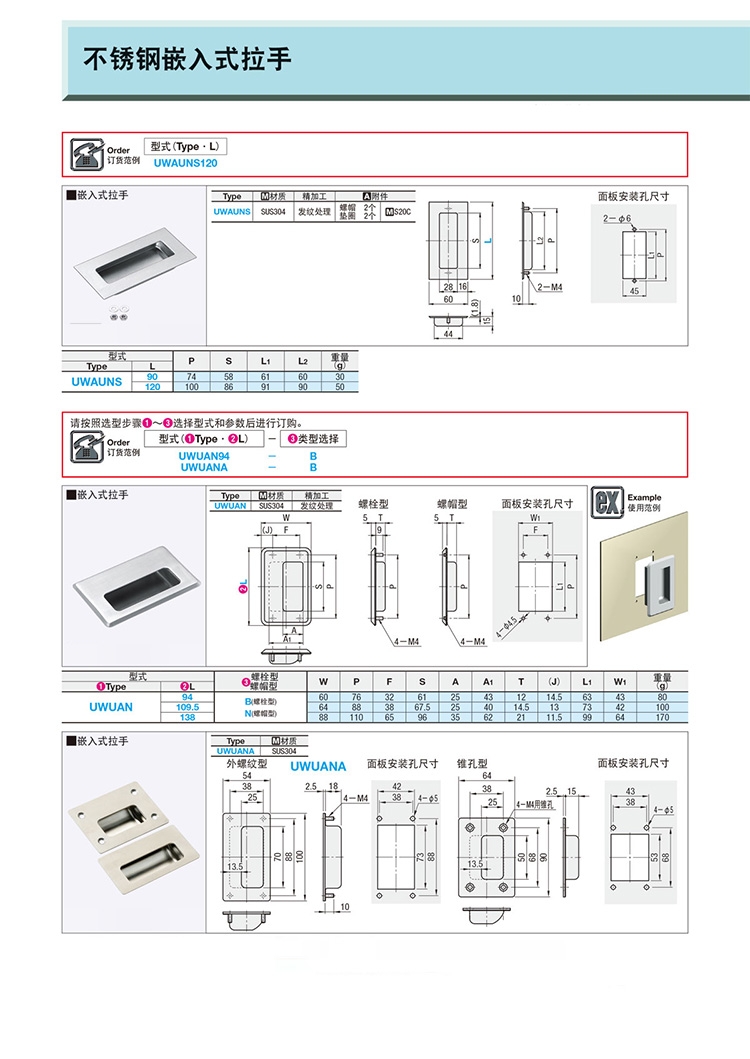 外螺纹型拉手:C-UWANM(钢) C-UWANSM(不锈钢)
