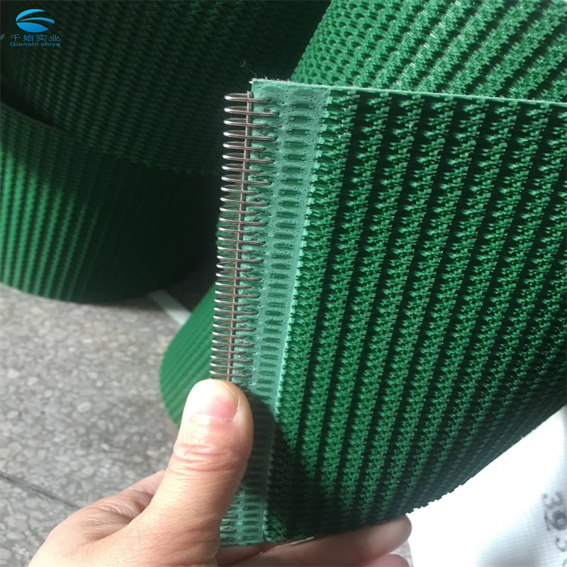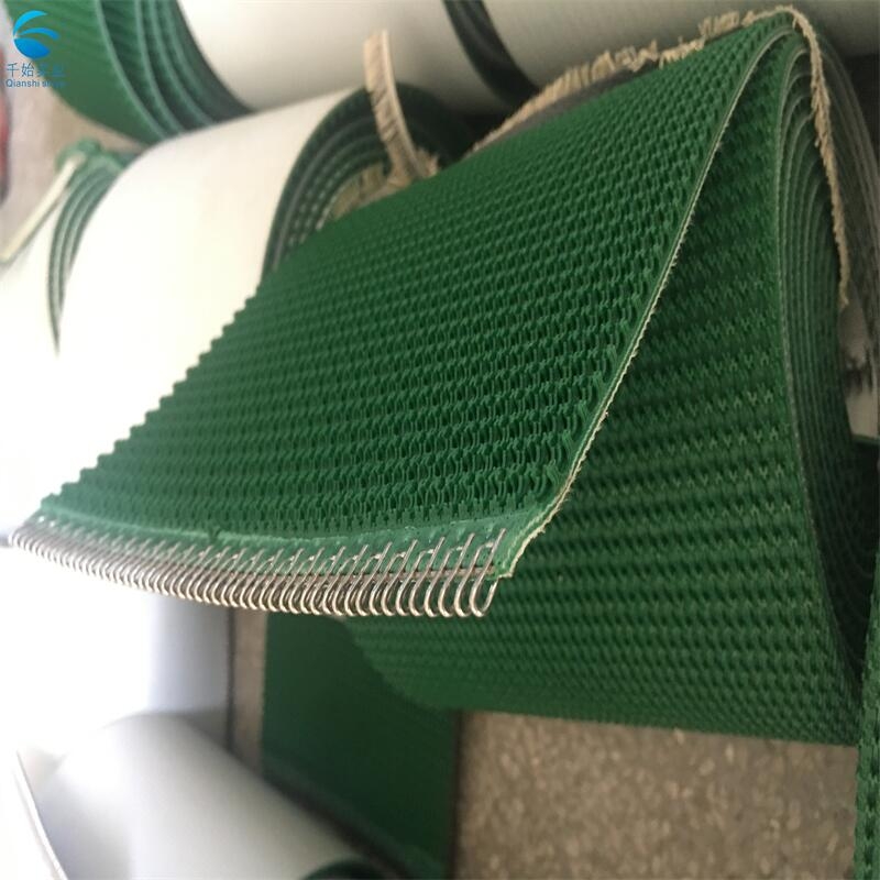 我厂生产各种型号的花纹输送带,花纹种类多达几十种,供您任意选择,保证您在我厂买到称心如意的产品。我公司拥有的花纹pvc输送带是由工作面为花纹状的复盖胶和非工作面为平面的复盖胶与带芯构成的倾角输送带。 花纹输送带特点:适用于倾角为040°物料的输送,防止物料下滑。花纹输送带主要有以下种类:草面花纹pvc输送带,鱼骨花纹输送带,菱形格花纹pvc输送带、十字花纹pvc输送带、网眼花纹pvc输送带、倒三角花纹pvc输送带、马蹄花纹pvc输送带锯齿花纹pvc输送带、小圆点花纹pvc输送带钻石花纹pvc输送带、蛇皮花纹pvc输送带、布纹pvc输送带、大圆台花纹pvc输送带、波浪花纹pvc输送带、搓板花纹pvc输送带、一字型花纹pvc输送带、细直条花纹pvc输送带、高尔夫花纹pvc输送带、大方格花纹pvc输送带、亚光花纹pvc输送带、粗质地花纹pvc输送带、格子花纹pvc输送带,人字形花纹输送带等各种花纹输送带,花纹输送带,厚度:2mm3mm5mm7mm8mm12mm花纹输送带 是由工作面为花纹状的复盖胶和非工作面为平面的复盖胶与带芯构成的倾角输送带。主要采用硬度较小的pvc精密加工在制作,聚酯布层采用pu浸渍处理,具有很强的拉力,耐摩擦而且摩擦系数小,制作轻型爬坡输送带,在较小坡度输送打包好的和散装物品过程中,有很好的效果,主要应用在爬坡输送机,陶瓷打蜡机,机场输送带行李,邮局输送包裹,邮件。厚度大的pvc花纹输送带,应用在大理石,花岗岩,陶瓷的抛光处理,表面有利于在加工过程中快速排出污水,上海千始厂家质优的价格,满意的质量,良好的售货渠道,上海千始包您满意。 我公司在大坡度生产输送物料方面,有独特的设计,我们主要采用在pvcpupe、丁晴橡胶,硅胶输送带上加挡板,加裙边,加导条,我公司裙边挡板导条都有多种规格,在很多情况下,我们需要加装不同高度的不同型号的挡板、裙边,防跑偏导条到皮带上,输送光滑、散装的物料到高处,令物料即使在高角度倾斜也不至于散落,这就是pvc群边挡板提升输送带,pvc挡板输送带,pvc群边输送带,pvc提升输送带主要应用在包装行业,物流行业,电子行业,食品行业,水产品,烟草行业,蔬菜,水果,茶叶,颗粒产品,粉状产品物料的输送,具有良好的效果,既能保证在高坡度的环境中,不至于下滑,散落。我们主要采用机械接头,机械热硫化接驳,直接让群边,挡板,导条与输送带融为一体,更好的利用皮带的特性,对输送带无伤害,使输送带的使用寿命更长。同时经过特殊加工还可做成导向带、提升带、裙边带等。