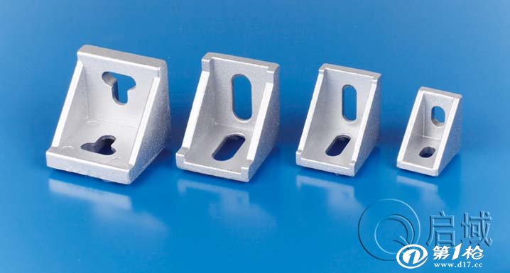直角件用于两根型材垂直连接,用于加强被连接型材点的支撑力,也可以用作需移动位置的型材连接方式,连接用的铝型材配件T型螺栓及螺母需另配.