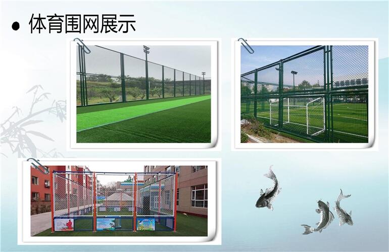 我厂生产的产品广泛应用于国防、工业、铁路、公路、煤碳、矿山、机械、纺织、造纸、食品、养殖、海洋、航空、石油、化工、建筑材料、农副业、园林、公园、商场、电子、家电等工业部门和科研领域。 我公司主要生产: 篮球场钢丝围网、电镀球场围网、双边丝圈地围网、防攀爬围网、学校小区围网等系列产品。