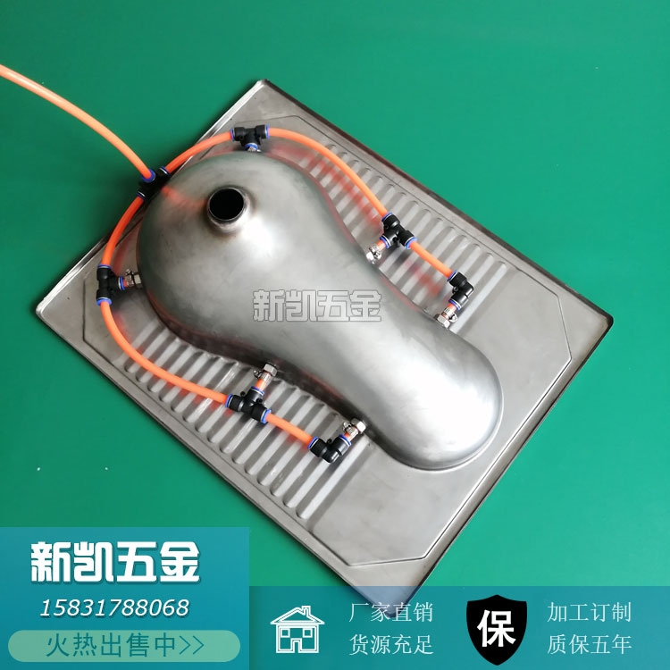 不锈钢一体式蹲便器是通过液压机一次性冲压成形,中间采用葫芦形轮廓,迎合人们蹲式入厕姿势合理,中部采用内凹设计,脚踏处并做条棱形防滑处理,防滑效果显著。
