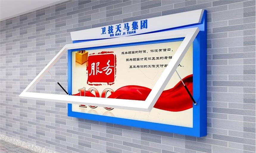 公司拥有一流的设计研发团队精心打造,每年推出100款新颖成熟的宣传栏新款式,塑造了每款宣传栏造型与颜色的完美搭配。