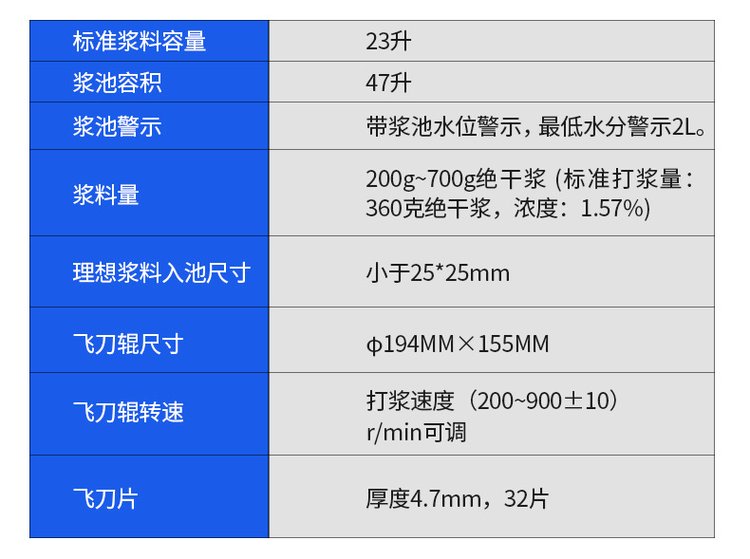 飞刀辊转速 | 打浆速度(200~900±10)r/min可调 | ||