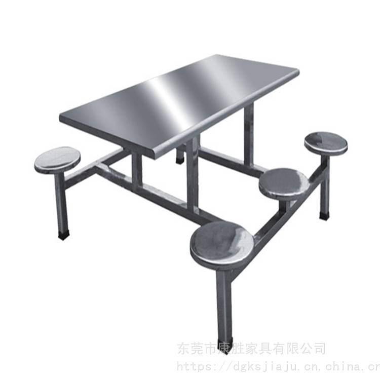 学校饭堂餐桌椅材质:桌面和凳面均为手工制作不锈钢材质,支架为方通铁管黑色烤漆工艺,