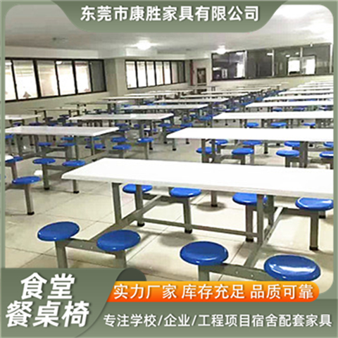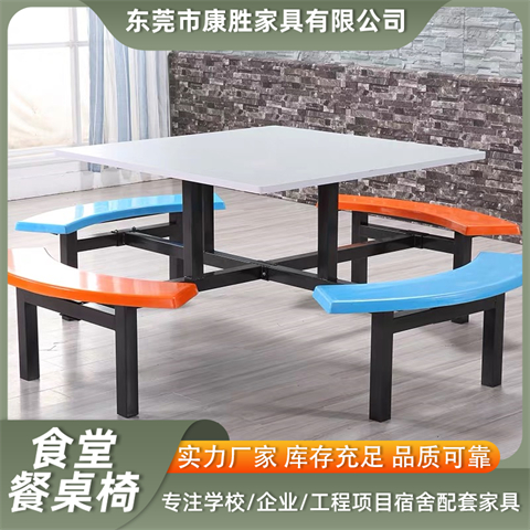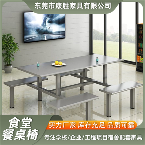 公司食堂用餐桌椅KS台面凳面木板支架不锈钢条凳4连体餐桌